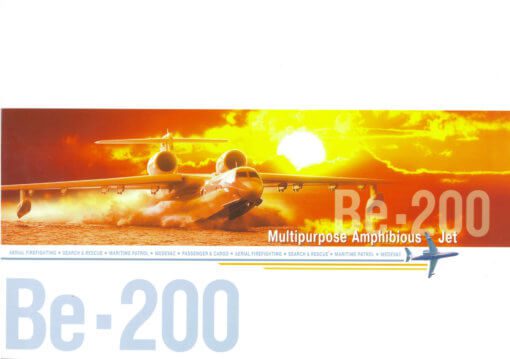 - Manufacturers colour brochure for the Beriev BE-200 Multipurpose Amphibian Jet, undated with 32 well illustrated full-colour pages.