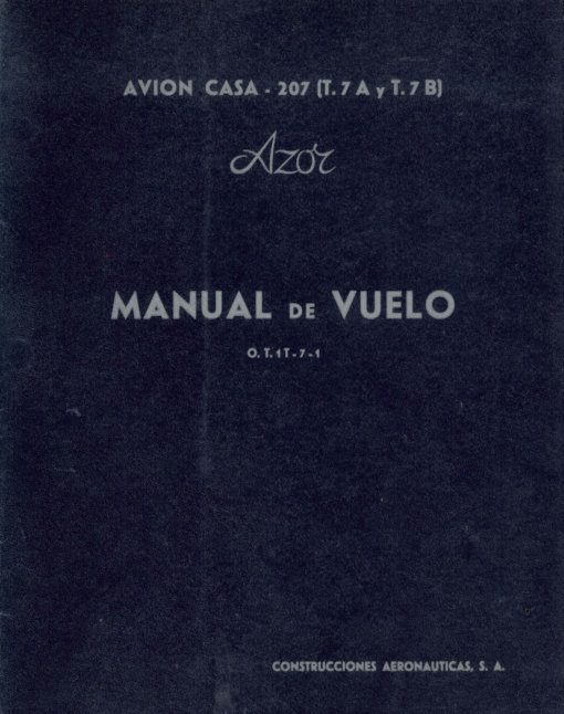 This title contains the Spanish Air Force flight and Maintenance manuals for the CASA Azor, plus one manufacturer’s colour brochure (two versions, one in Spanish and one in English.) The files have been scanned from the original flight manuals and retain any colour pages.