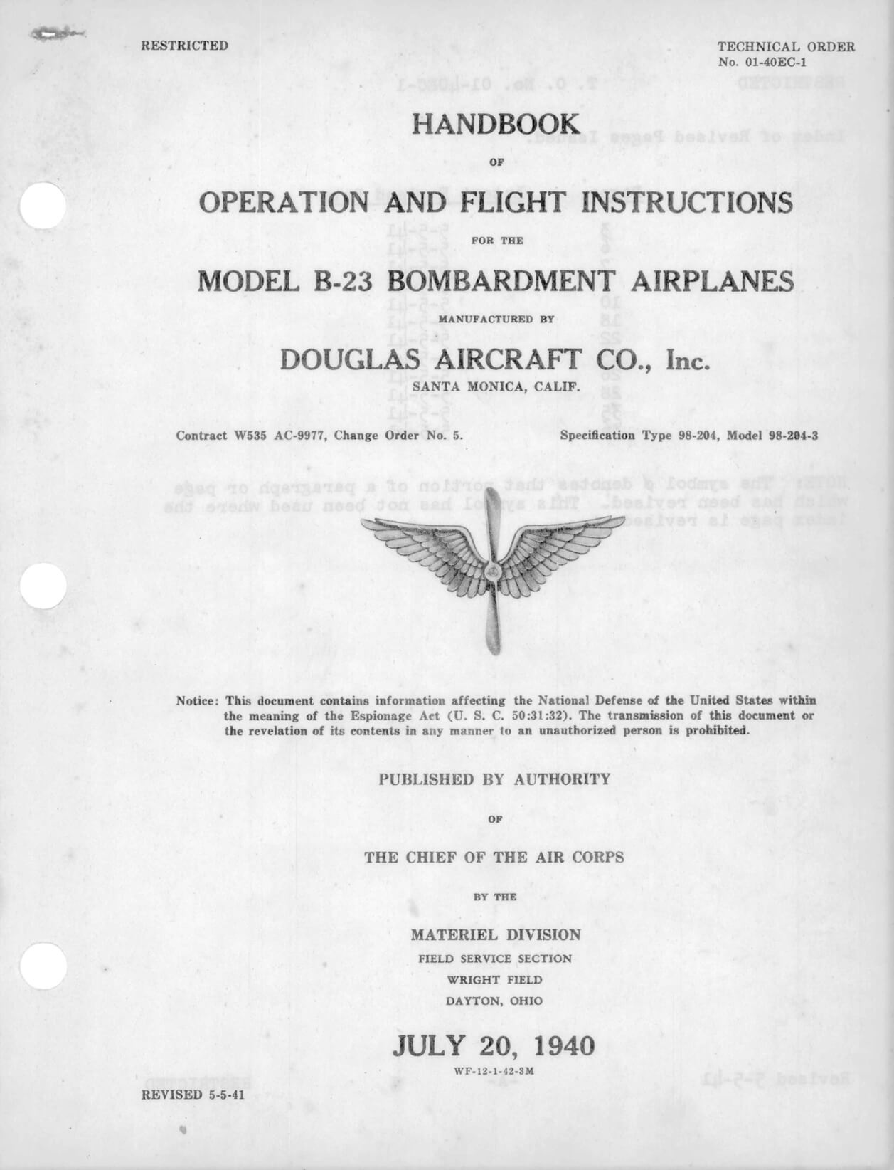 To maximise value, this title contains the USAAF pilot flight manuals for both the B-18A and the B-23, and the complete USAAF Erection and Maintenance Manual for the B-18A. The files have been scanned from the original flight manuals and retain any colour pages.