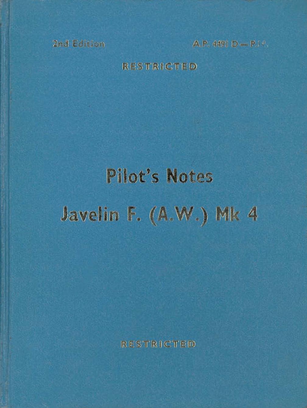 - RAF Pilot’s Notes for the Javelin FAW.Mk.4, AP 4491D-PN 2nd Edition, with approx. 175 pages.