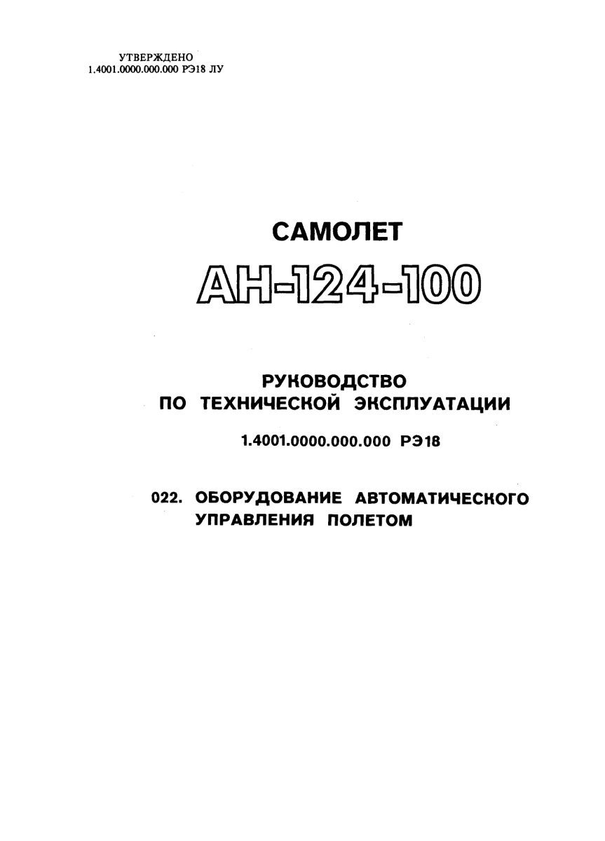 • Flight Exploitation manual for the Antonov AN-124, Book One dated 1993, with approx. 444 pages. IN THE RUSSIAN LANGUAGE.