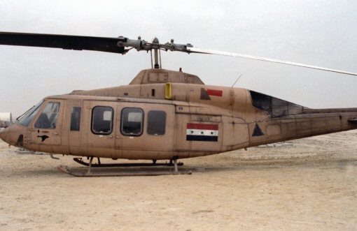 The Bell 214 was developed as a specialised heavylift helicopter from the Bell 205 “Huey” by installing a 2,950 hp T5508 engine. The principal military user was Iran, with plans to licence manufacture the type in the late 1970’s, but these fell through with the downfall of the Shah.