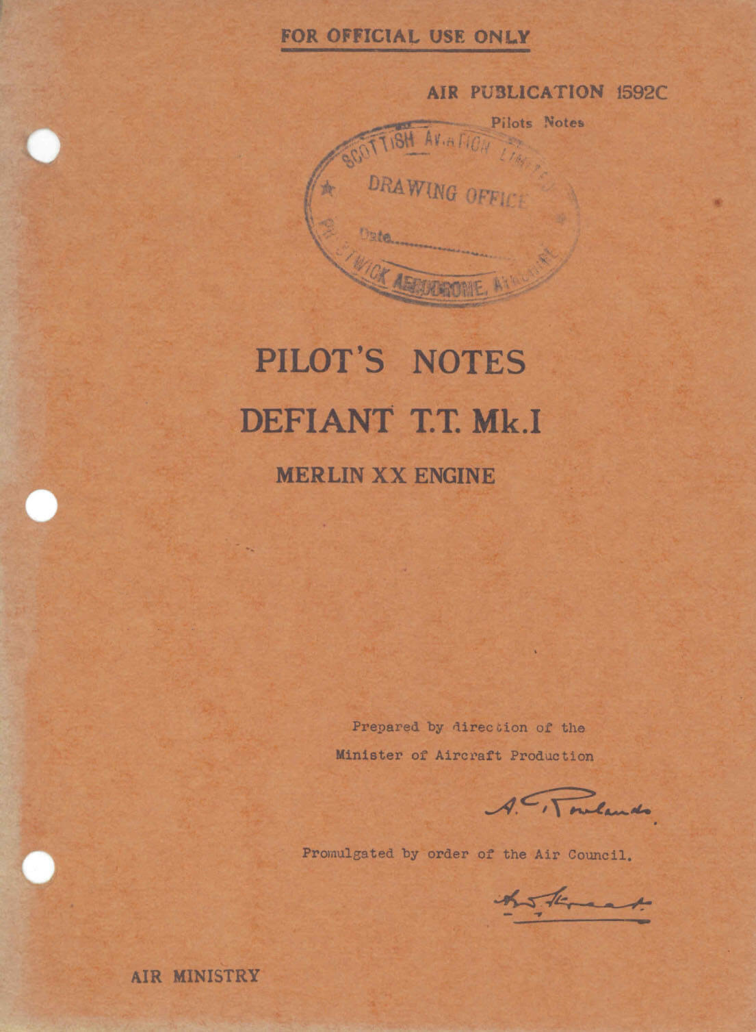 The title includes two flight manuals (titled Pilot’s Notes) for the Defiant plus one maintenance manual (known as the Servicing and Descriptive Handbook.) One flight manual is contained in the same manual as the Servicing Handbook. It also includes the Aircraft Profile for the Defiant. The files have been scanned from the original flight manuals and retain any colour pages.