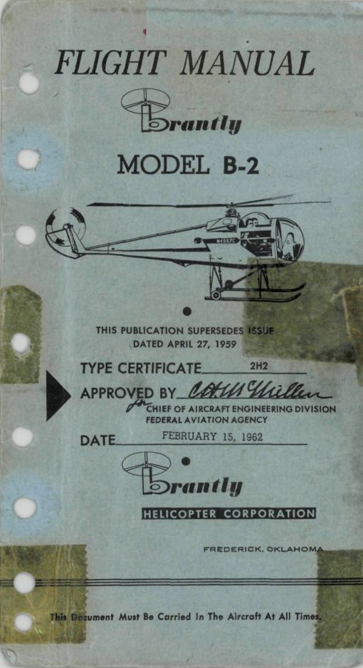 - Manufacturer’s Flight Manual for the Brantly B-2 (including B-2A), dated 15 Feb 1962 revised to 29 April 1964 with approx. 48 pages.