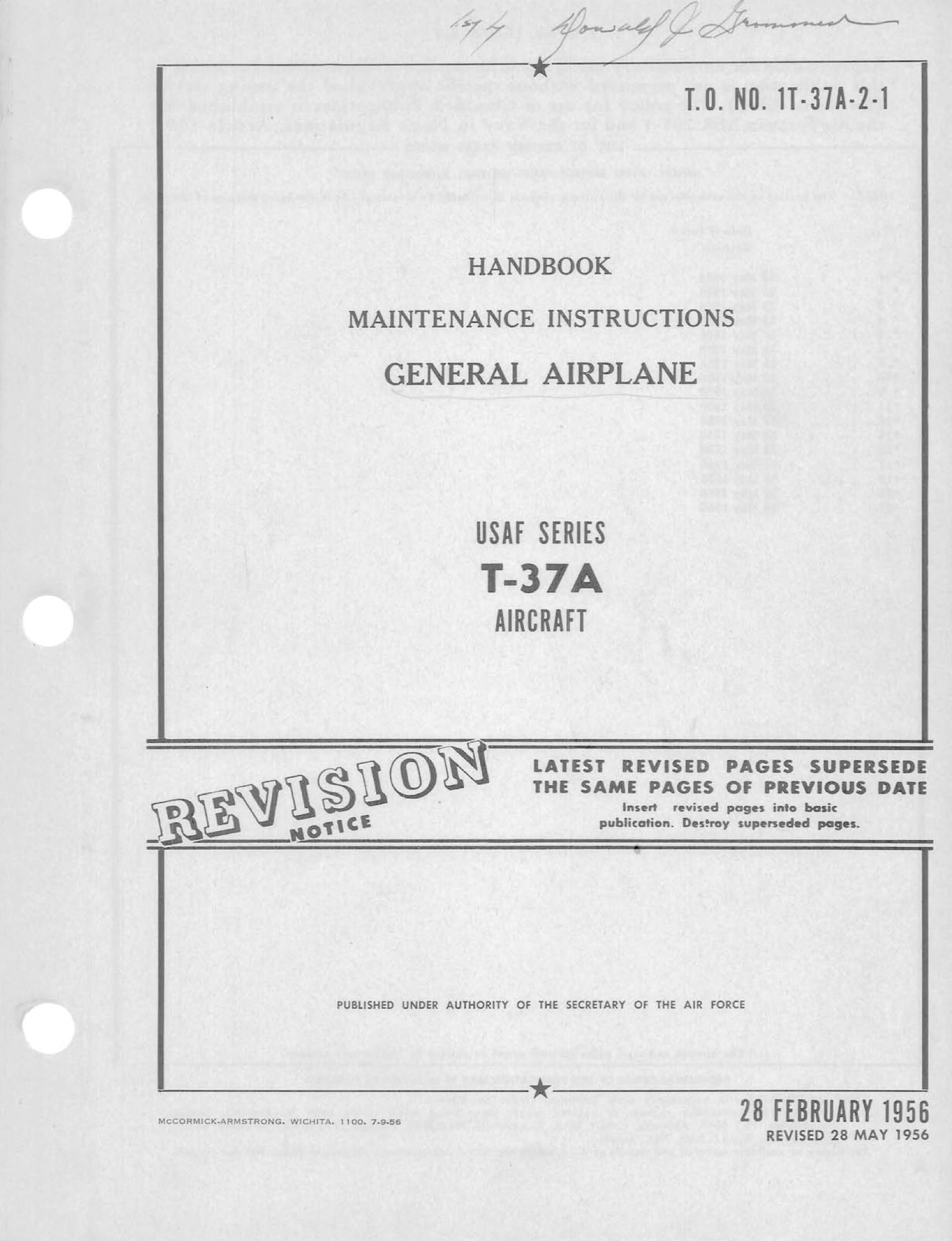 We offer two titles for the T-37. The first title contains the flight and maintenance manuals for the Cessna T-37A plus an interesting Cessna brochure on the history of the T-37 program, and the second contains the flight and training manuals for the T-37B plus a detailed Cessna brochure on the T-37. The files have been scanned from the original manuals and retain any colour pages.