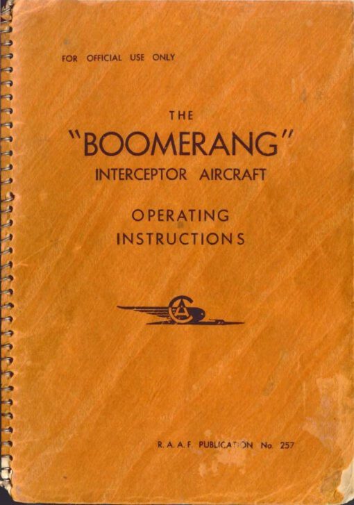 - RAAF Operating Instructions for the “Boomerang” Interceptor Aircraft. RAAF Publication No 257 dated Jan 1942, with approx. 103 pages.