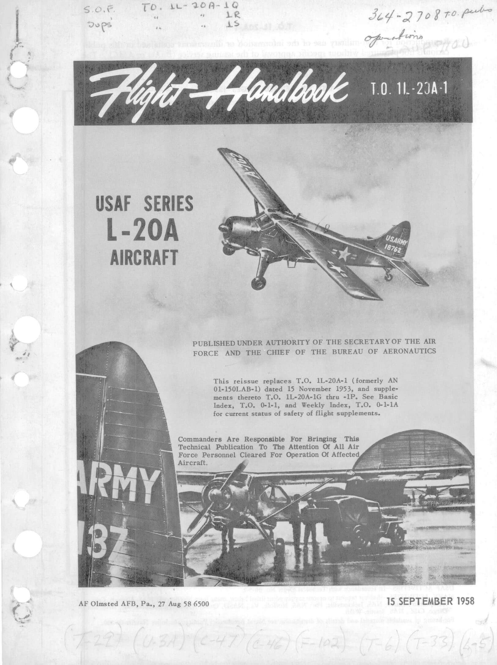 - USAF Flight Handbook for the L-20A Beaver, T.O. 1L-20A-1 dated 15/9/58, with approx. 152 pages.