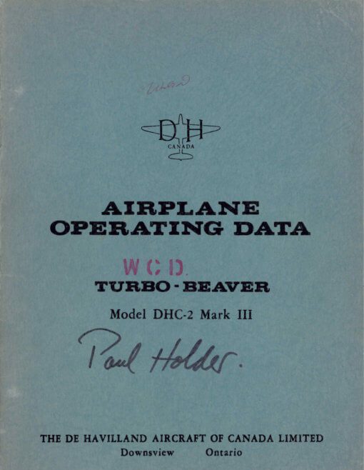 - De Havilland Canada manufacturer’s Flight Manual for the DHC-2 Mk III Turbo-Beaver, dated 15/11/65, with approx. 132 pages.