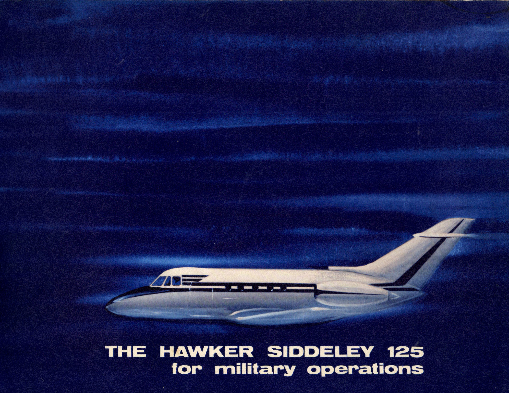 - Manufacturer’s colour brochure titled “Hawker Siddeley125 for military operations”, document D.H. Sales Eng./1107/DGF/125 dated Sept 1968 with 28 pages.