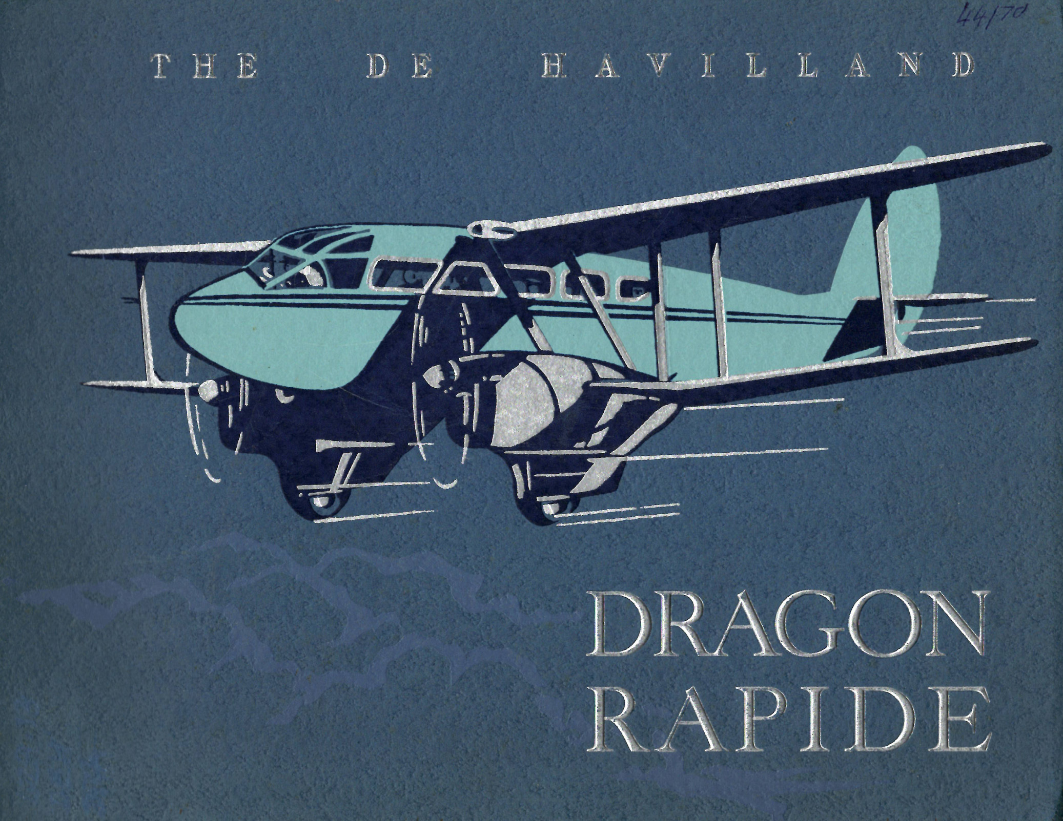 - Manufacturers colour brochure for the De Havilland Dragon Rapide, printed 6/37 with approx. 22 pages.