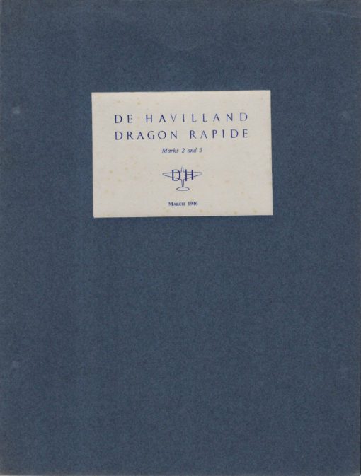 - Manufacturers Specification for the Dragon Rapide Mks 2 and 3, dated March 1946 with approx. 24 pages.