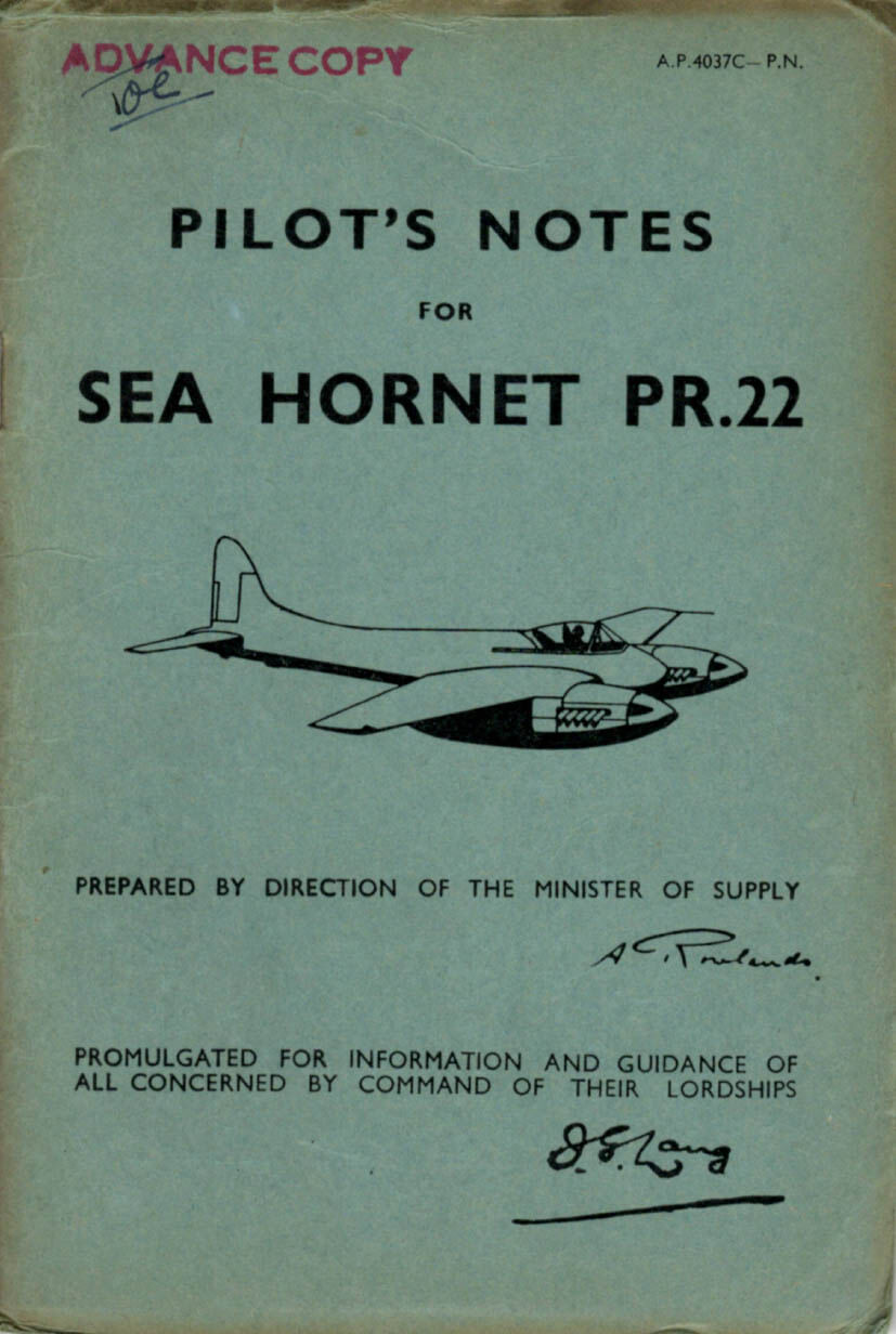 - RAF Volume One (Servicing & Descriptive Handbook) for the Sea Hornet PR.22, AP 4037C-Vol 1 dated September 1949 with approx. 107 pages. (A supplementary manual to the Volume One for the Sea Hornet F.20.)