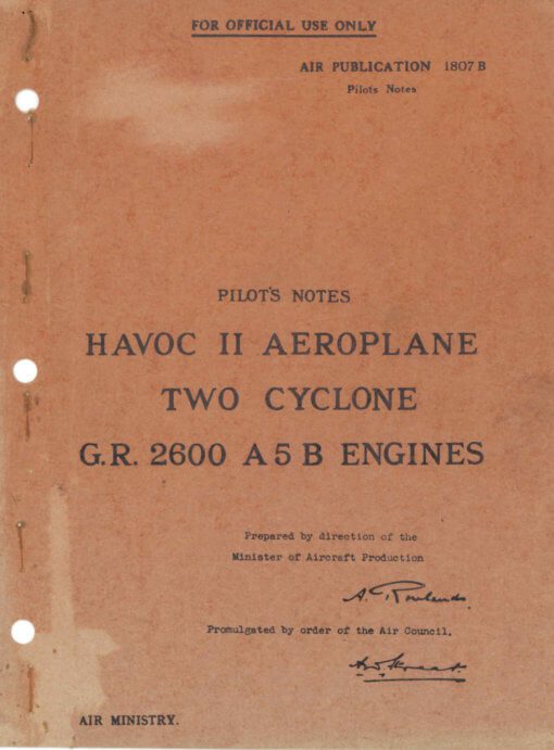 - RAF Pilots Notes for the Havoc II, Air Publication 1807B Pilots Notes dated July 1941 with approx. 48 pages.