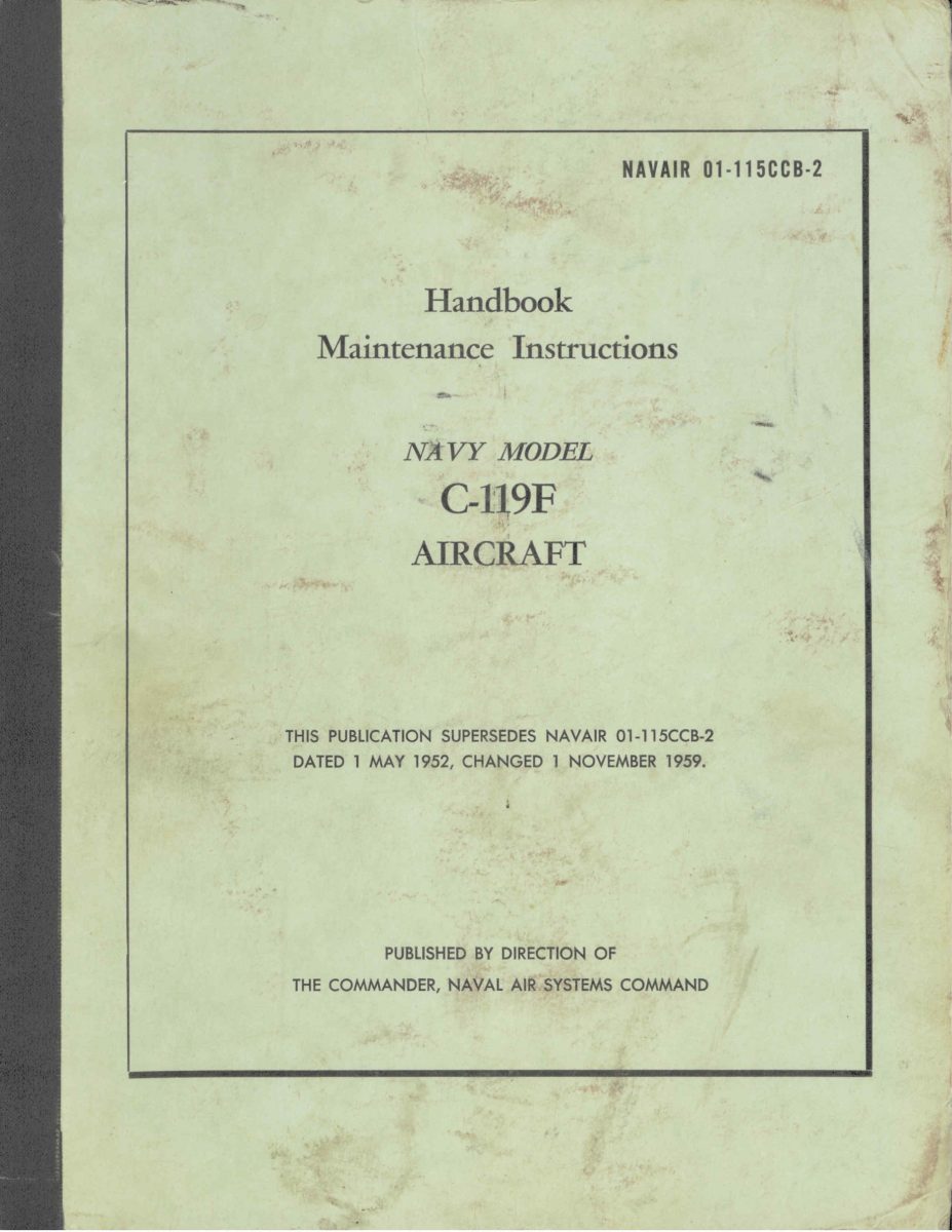 - US Navy Handbook of Maintenance Instructions for the C-119F (the post 1962 designation of the R4Q-1), NAVAIR 01-115CCB-2 dated 15 May 1968 with approx. 760 pages.