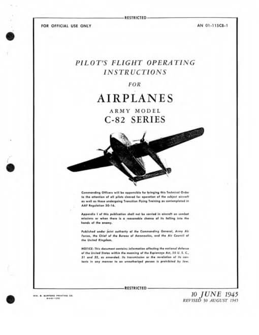 - USAAF Pilot’s Flight Operating Instructions for the C-82, AN 01-115CB-1 dated 10-6-45 revised to 30-8-45, with approx. 81 pages.