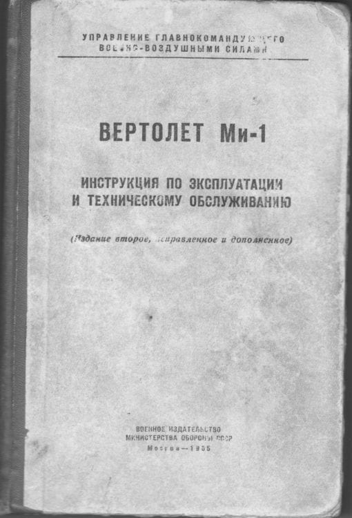 - Manual “инструкция по зксплуатации и техниуескому оьслууживанию” (Operation and Maintenance Manual) for the MIL Mi-1, dated 1955 with approx. 231 pages. In the RUSSIAN language.