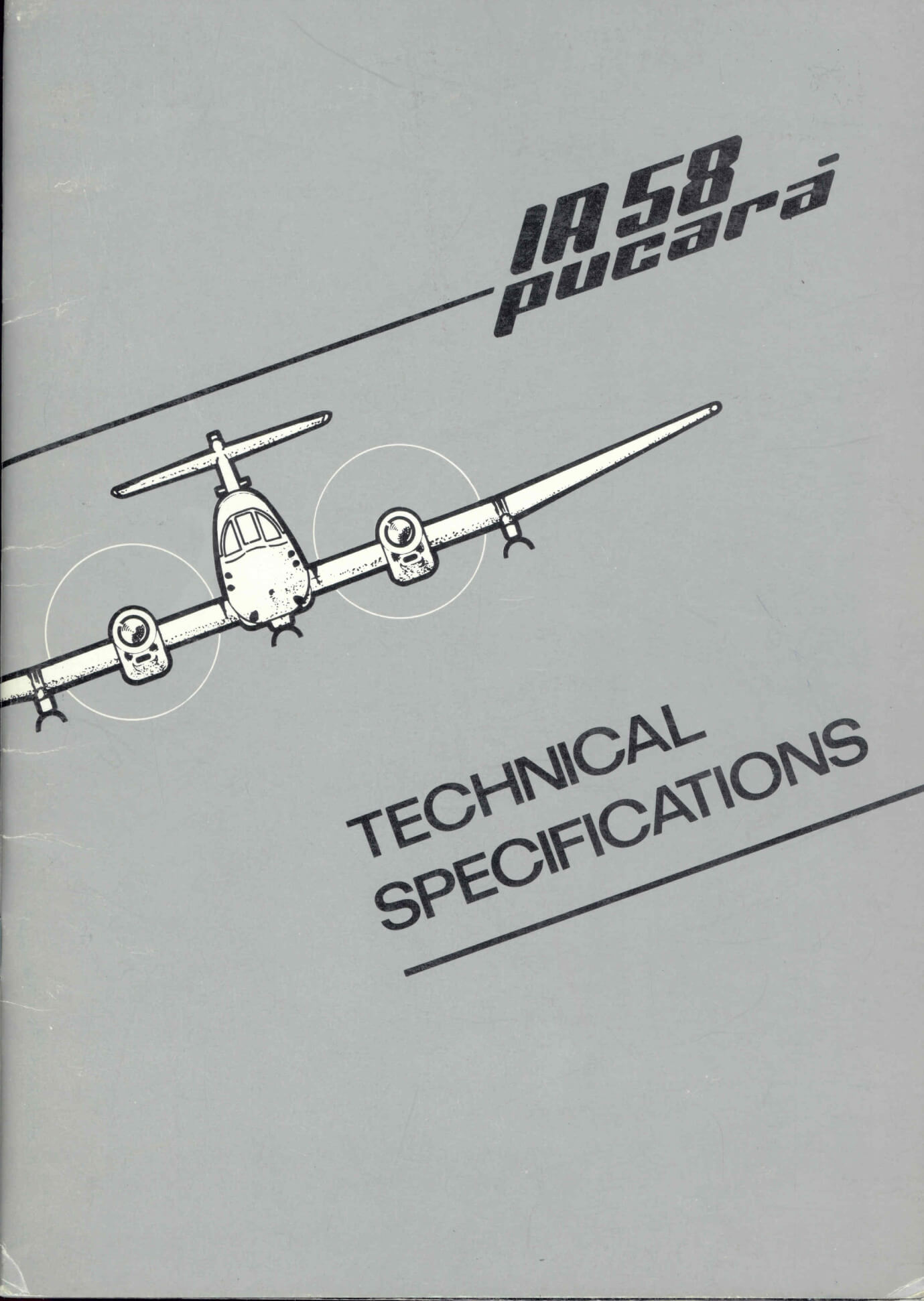 - Manufacturers Technical Specification brochure for the IA-58 Pucara dated Aug 1980 with approx. 52 pages. In English.
