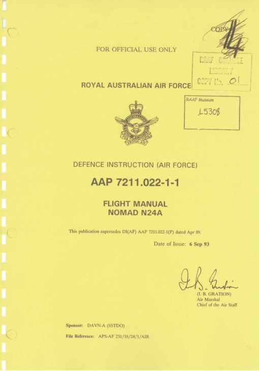 - RAAF Flight Manual for the Nomad N24A, AAP 7211.022-1-1 dated 6-9-93 with approx 200 pages.