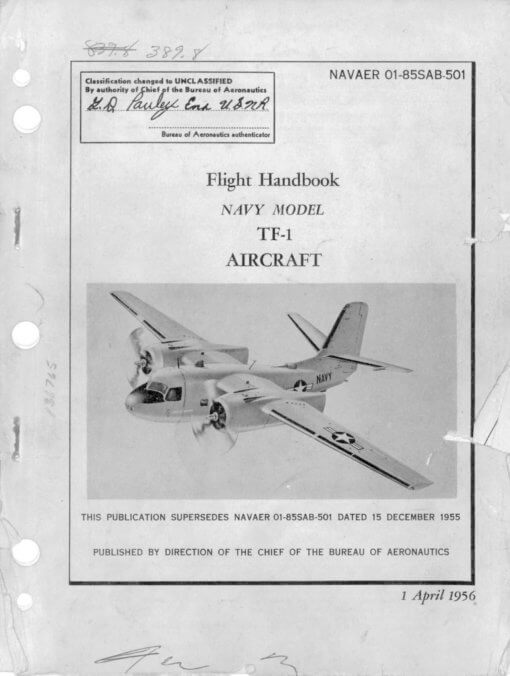 - US Navy Flight handbook for the TF-1, NAVAER 01-85SAB-501, dated 1-4-56 with approx. 108 pages.