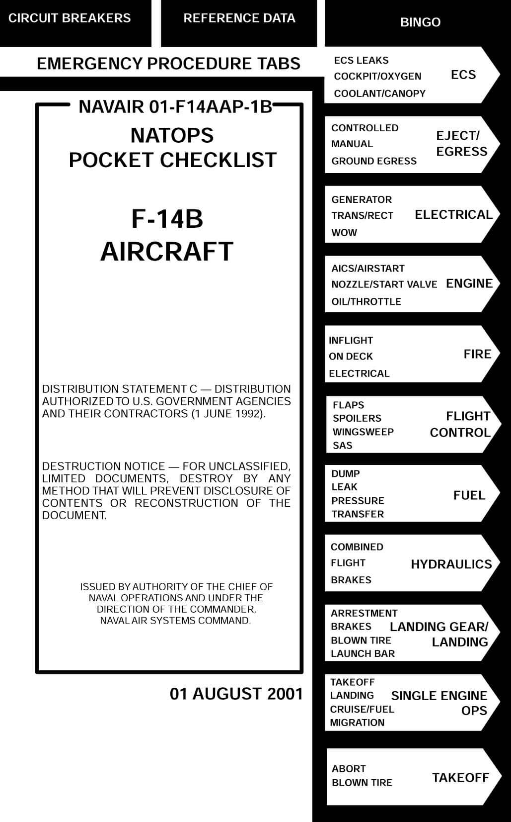- US Navy NATOPS Pilot’s Pocket Checklist for the F-14B, NAVAIR 01-F14AAP-1B, dated 1-8-01, revised to Change 3 dated 15-1-04, with approx. 355 pages.