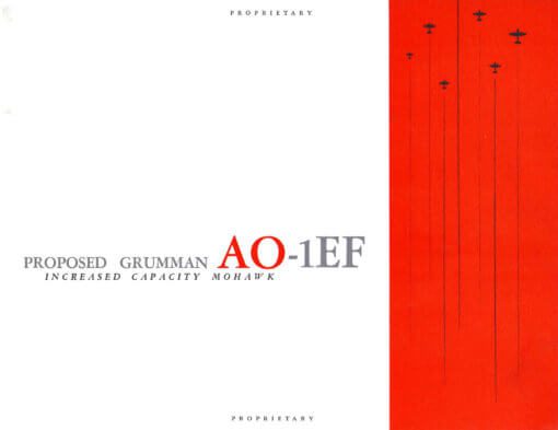 - Manufacturer’s brochure titled “Proposed AO-1EF Increased Capacity Mohawk”. Publication PGB-134-6B dated Jan 1961 with approx. 28 pages. Gives details of a proposed Mohawk variant with an enlarged front fuselage for additional crew. Shows photos of a mock-up of the proposed fuselage.