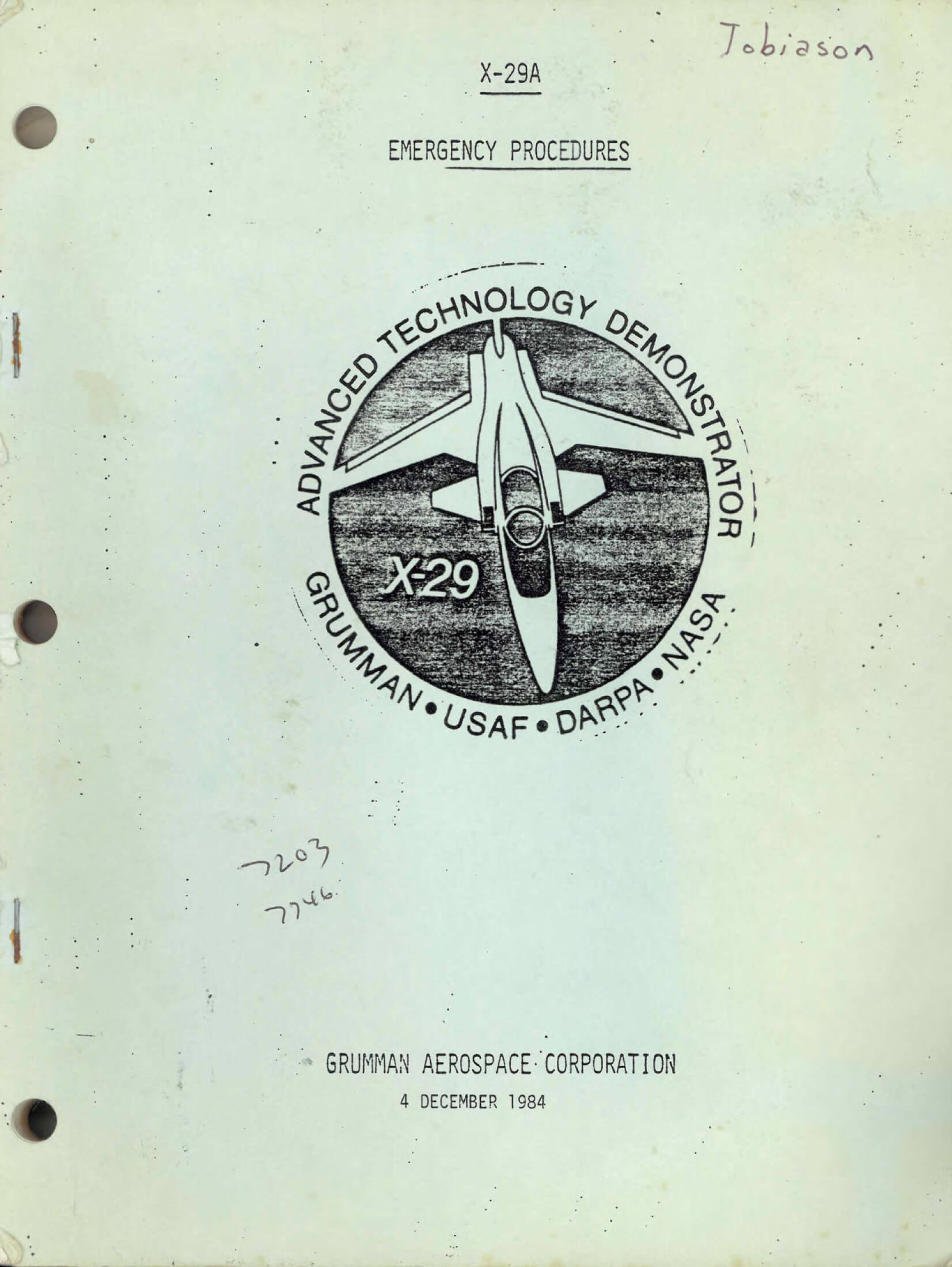 - Grumman Emergency Procedures document for the X-29A, dated 4 December 1984 with approx. 216 pages.