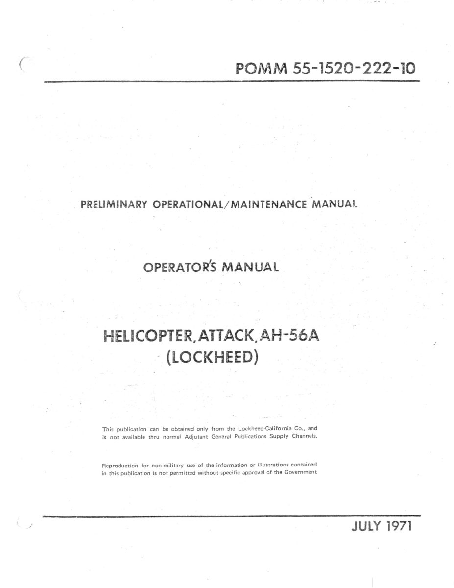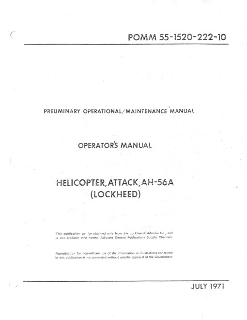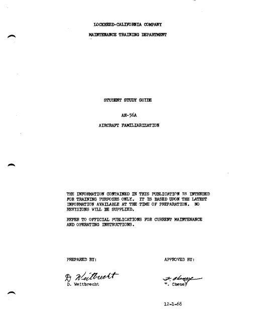 This title contains the preliminary flight manual for the Cheyenne along with two Lockheed training manuals. The files have been copied from the original flight manuals and retain any colour pages unless otherwise stated.