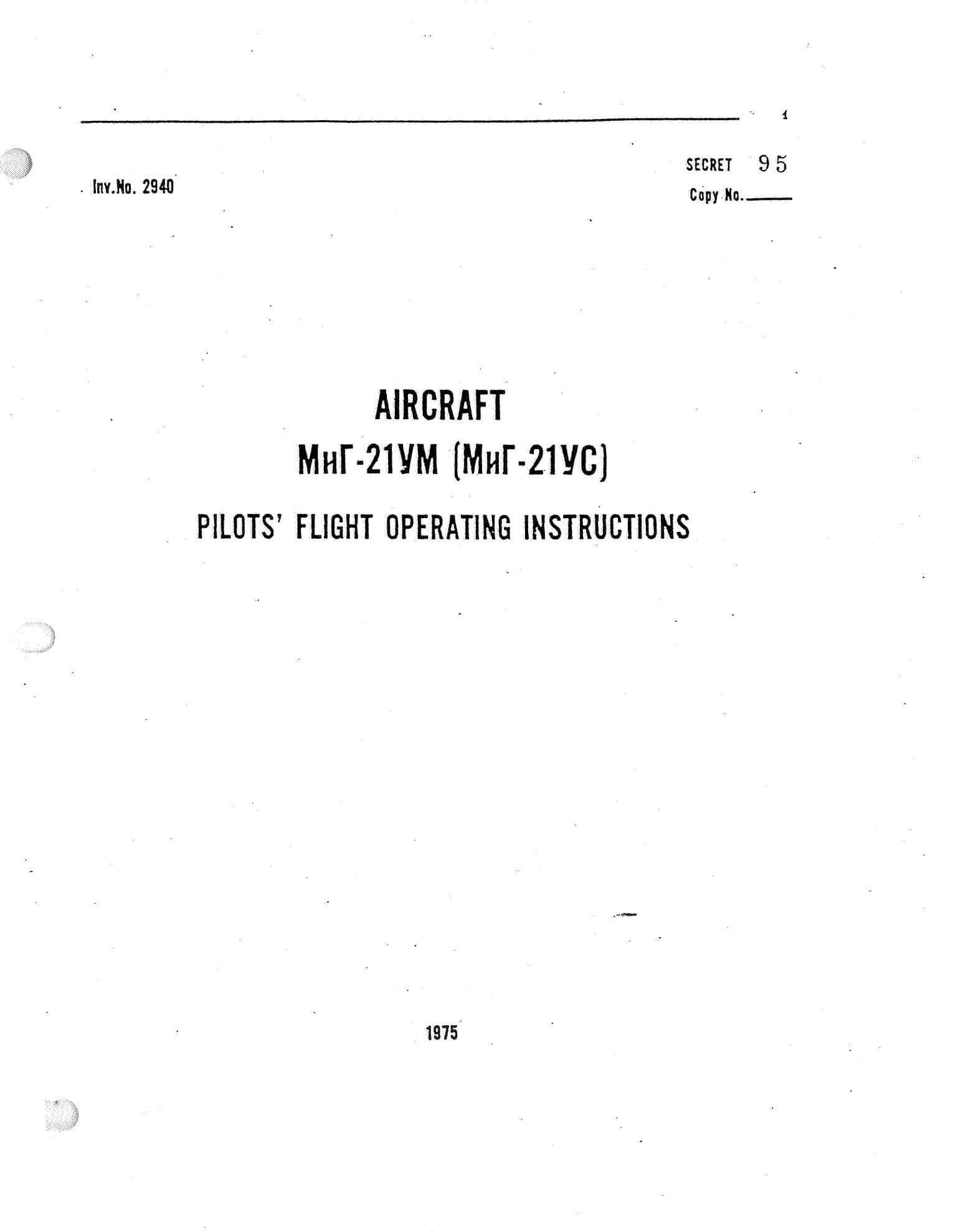 - Pilot’s Flight Operating Instructions for the MIG-21UM (MIG-21US) two seat trainer, dated 1975 with approx. 225 pages. (In English). Another export manual, scanned from a copy.