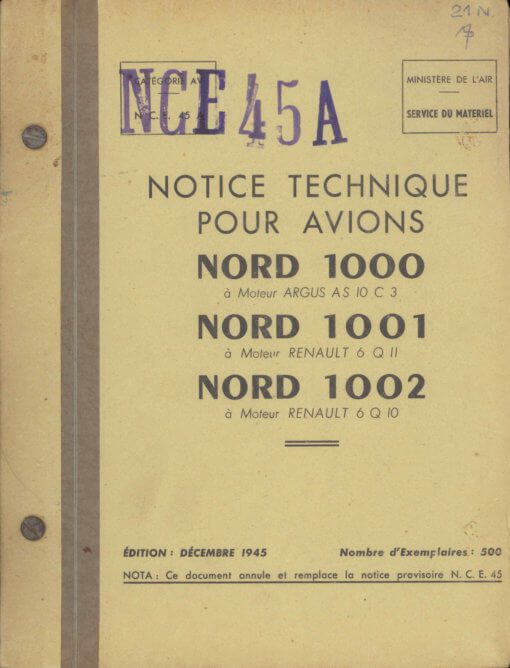This title contains the complete manual for the the Nord 1000 series in French, and one for the Bf108, in German. These manuals are like an owner’s manual and contain complete flight operating and maintenance information. The manuals have been scanned from the original flight manuals and retain any colour pages.