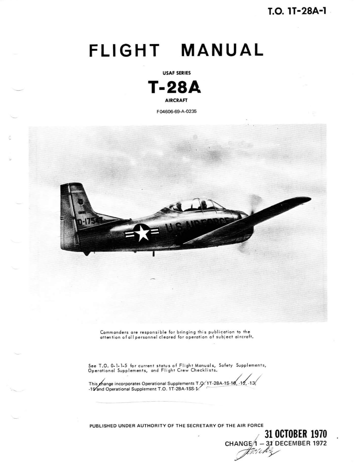 - USAF Flight Manual for the T-28A, T.O. 1T-28A-1 dated 31/10/70, revised to 31/12/72, with approx. 150 pages.