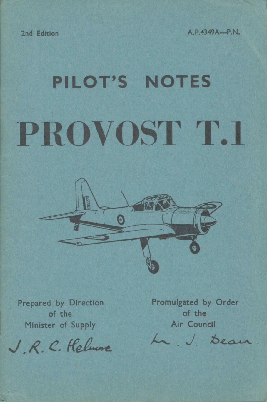 - RAF Pilot’s Notes for the Provost T.Mk.1, AP 4349A-PN, 2nd edition dated July 1955, with approx. 46 pages.