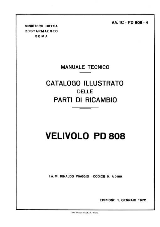 - Italian Air Force Parts Catalog (Titled Catalogo Illustrato Delle Parti Di Ricambio) for the Piaggio PD 808. Document AA. 1C-PD 808-4 1st Edition dated June 1972 with approx. 1083 pages. In Italian.