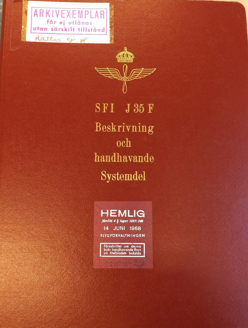 - Beskrivning och Handhavande for the Saab J35B, undated with approx. 118 pages. (All the above in Swedish.)