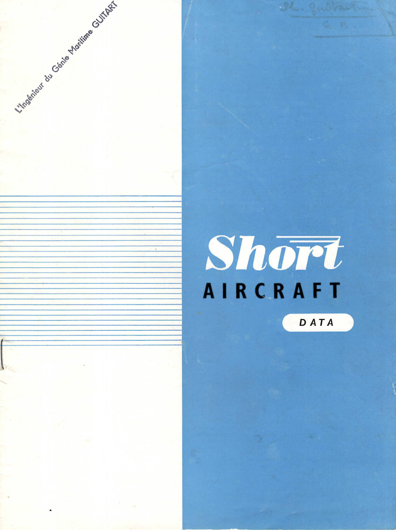 - Manufacturer’s publicity brochure for the range of aircraft produced by Short Bros, titled “Short Aircraft Data”. Includes Solent, Sandringham, Sealand, etc. Undated with approx. 16 pages.