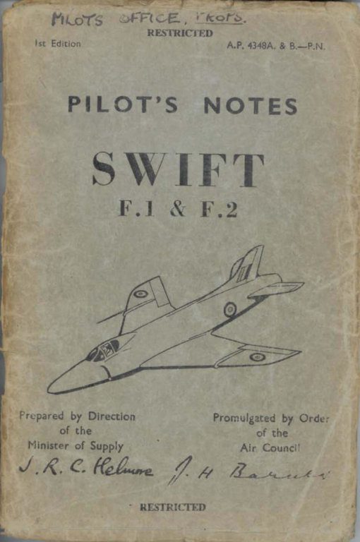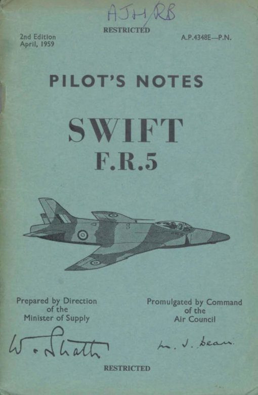 This title on the Supermarine Swift contains four flight manuals (called Pilot’s Notes by the RAF) for the Supermarine Swift, covering all production models. The files have been scanned from the original flight manuals and retain any colour pages.