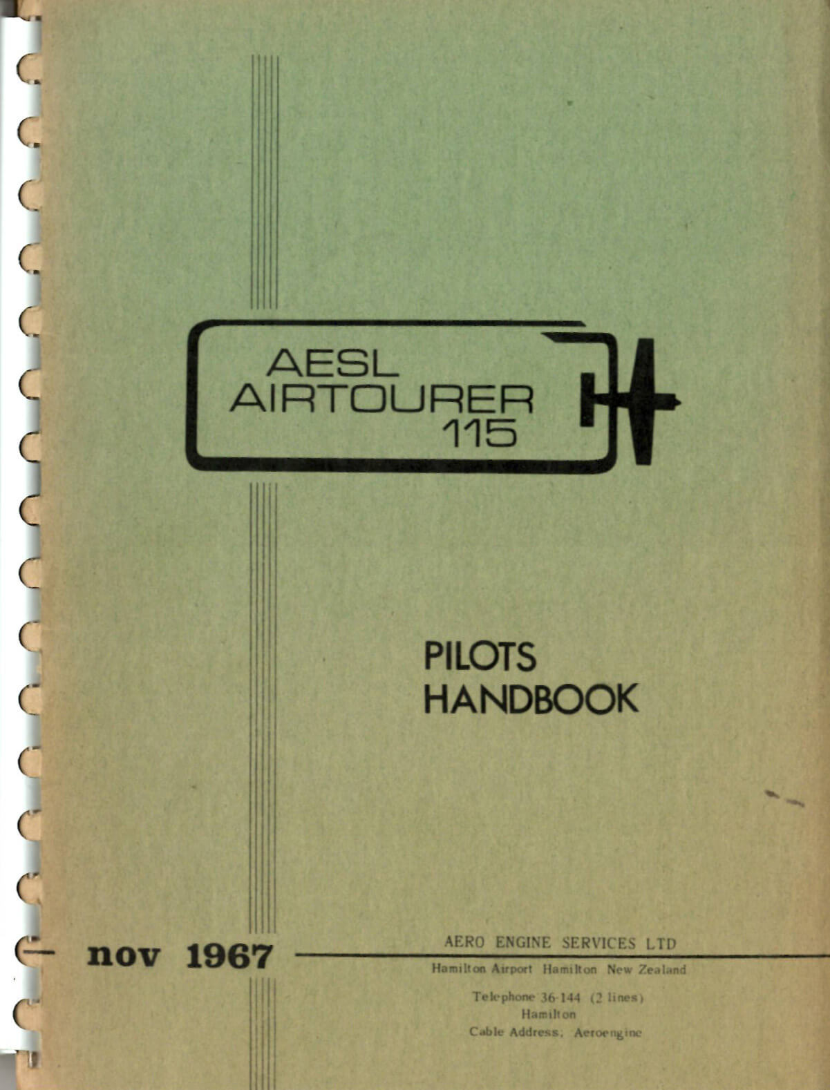 - AESL manufacturer’s Pilot’s Handbook for the Airtourer 115, dated November 1967 with approx. 71 pages.