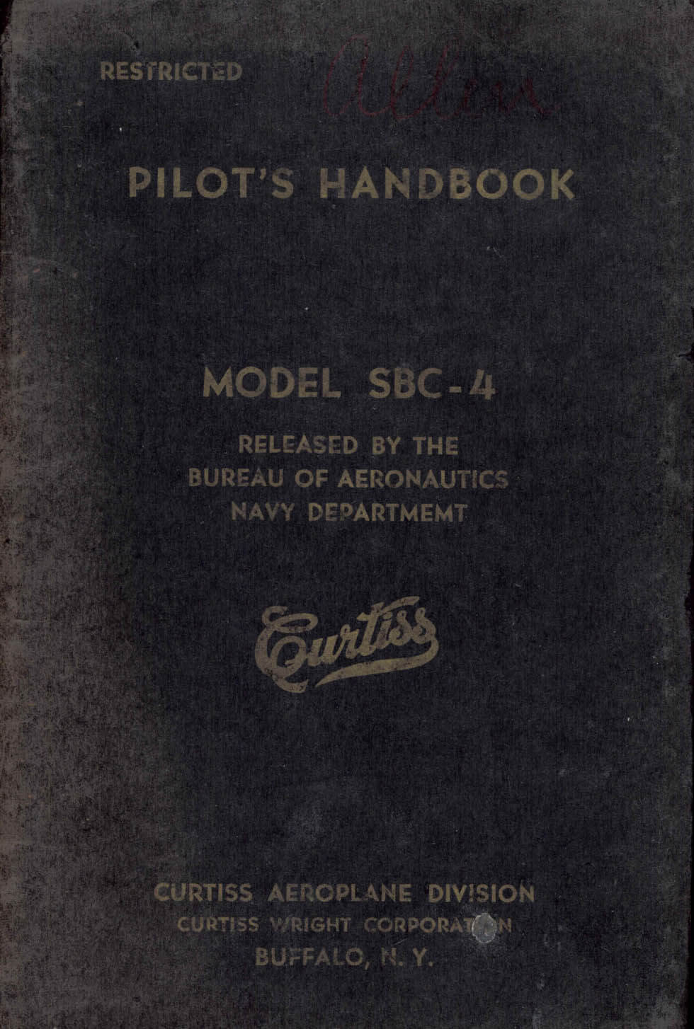 - US Navy Pilot’s Handbook for the SBC-4, dated 1-3-39, revised to 15-12-39, approx. 44 pages.