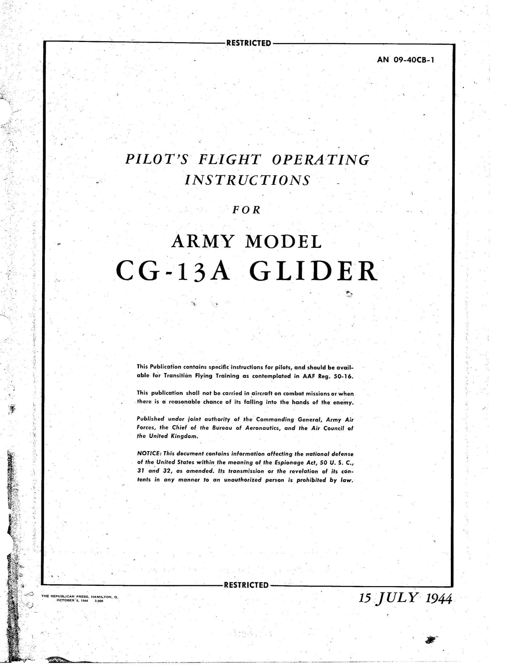 - USAAF Erection & Maintenance Instructions for the CG-13A glider, T.O. 09-40CB-2 dated 5-10-44, with approx. 108 pages.
